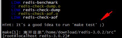 3, 进入到 redis-3.0.2 文件夹下执行 make 编译命令,