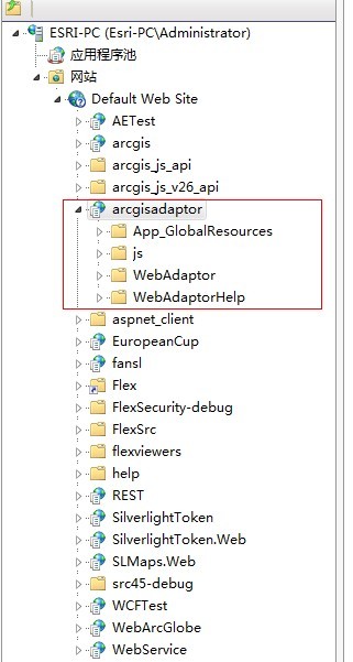 WebAdaptor 这个组件是在 ArcGIS Server 的安装盘中,安装也比较容易,只需要点击 Setup 然后,下一步即可(要和 Web 服务器装在一起,我这里用的是 IIS 作为服务器),安装完之后,会在 IIS 服务器上看到我们安装的 WebAdaptor,如下图: