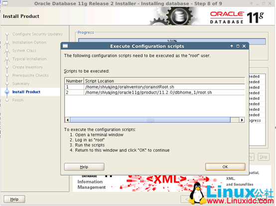 然后按照安装程序提示最后执行两个脚本(这一步我只遇到一个脚本,但是并不影响):