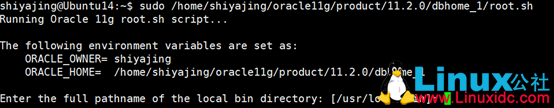 sudo /home/shiyajing/oracle11g/product/11.2.0/dbhome_1/root.sh(主要)