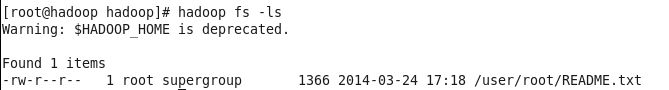 使用 Hadoop 的命令 put 将本地文件 README.txt 送到 HDFS。