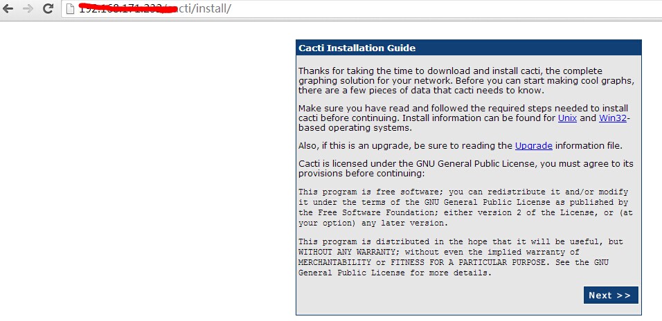 之后,再打开页面,http://10.254.1.12/cacti/install/,就有信息如下: