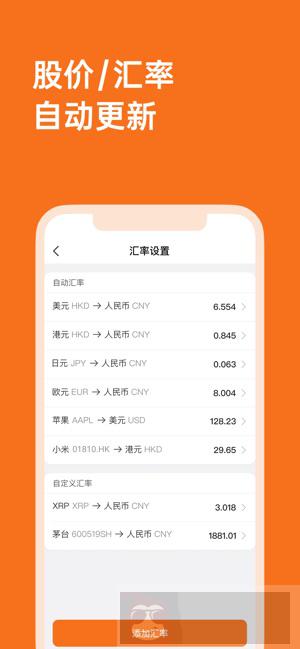 软件支持常用 货币自动更新汇率并进行转换 ,可以轻松计算主流外币资产;支持 股票的市值计算,输入 A 股、美港股的股票代号和持股数量就可以自动计算市值;虚拟货币和数字货币也可以设定自定义汇率,便捷的进行计算。