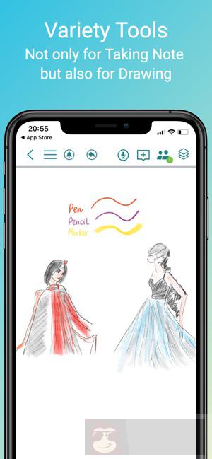通过 CollaNote,你可以在 iPad 上像纸张一般舒适地写作,配合 Apple Pencil 的话,写写画画的涂鸦体验非常流畅自如。钢笔、荧光笔、橡皮擦等工具也非常好用,并且拥有丰富的调色板、并支持使用收藏夹来保存笔的颜色、大小和不透明度等,方便你随时地在不同的笔之间切换。