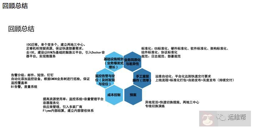 这几年我们一直主要围绕着质量、效率、流程、成本来展开运维工作,并且发现我们运维遇到的问题,慢慢的由运维转化成技术营运,来优化我们的工作,提高运维人员的技术能力,这其中包括填坑、标准化,自动化、流程化和数据化,以及我们对未来混合云运营的一个展望。