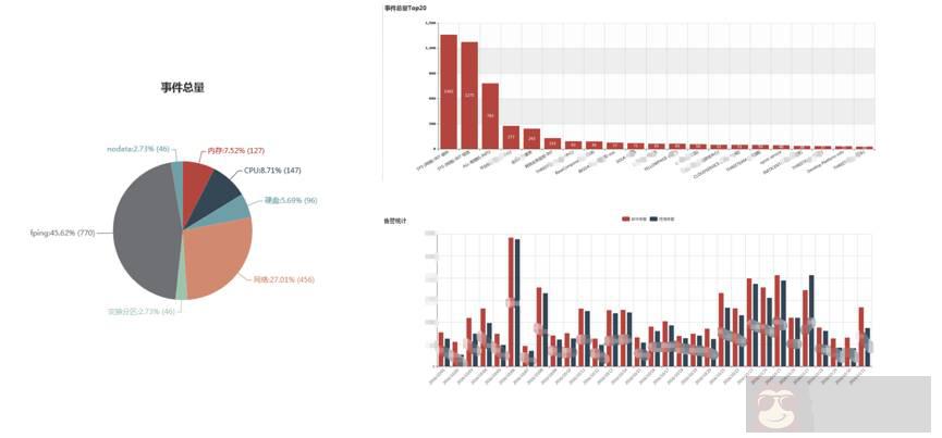 从上面可以看到,我们通过这个平台降低了运营成本,这是告警平台的一个截图,左边是应用级,应用级就包括 CPU、内存等等,下面是根据业务,哪个业务按月、按天,这也是后续需要优化的。下面是一个月的每天告警情况,哪天的告警比较多,可以根据这天的情况分析一下,保障后面的类似故障不会发生。