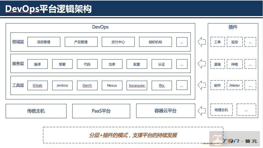 - 如何打通工具链的集成?其实大部分企业,现状都是在软件研发生命周期各个环节,已经有了一批的工具,只是这些没有串联起来,如果是小工具随便用用还好,但是如果是一些用的比较根深蒂固的,可能就不是那么好替换了,方案会更加倾向于集成。集成除了技术因素外,还必须要想清楚哪些工具去集成,哪些不集成。集成到什么程度,比如针对于底层的 IaaS 平台或者容器云平台,我们就只是进行接口调用,而并非功能的接管。对于 Jenkins 这种敏感资源,更倾向于把整个 Jenkins 封装起来,不对外进行暴露。