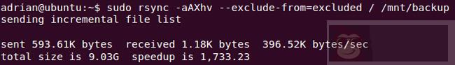 $ sudo rsync -aAXhv --exclude-from=excluded / /mnt/backup