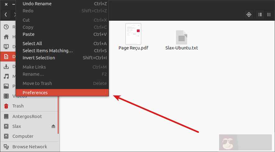 要修复这个,进入文件管理器,并在菜单中点击选项: