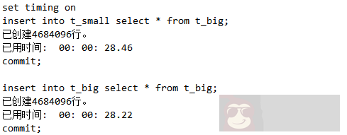 由上面代码可以看出,虽然 t_small 是小表,t_big 是大表。但是插入一般不会随着记录的增加越插越慢。什么时候会越插越慢,就是当表有索引的时候。因为索引需要维护,越大维护越困难。我们继续做一组试验。