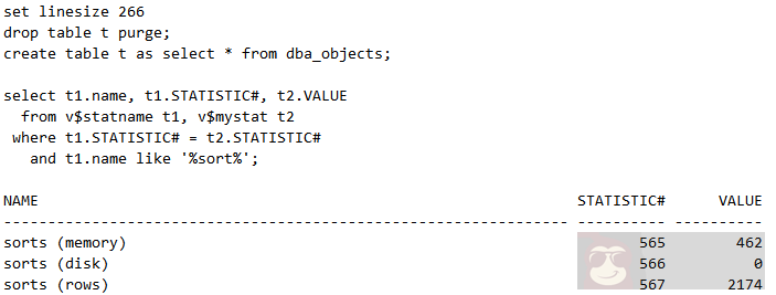 未建索引前,观察一下数字字典中记录的系统排序情况,如下: