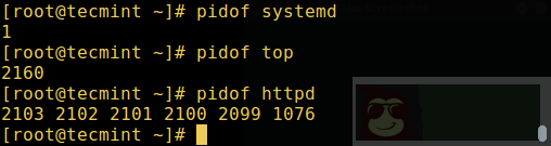 你可以用 pidof 命令查找某个进程的进程 ID: