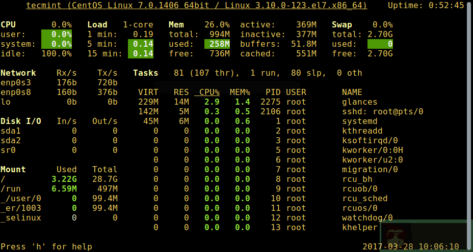 glances 是一个相对比较新的系统监控工具,它有一些比较高级的功能: