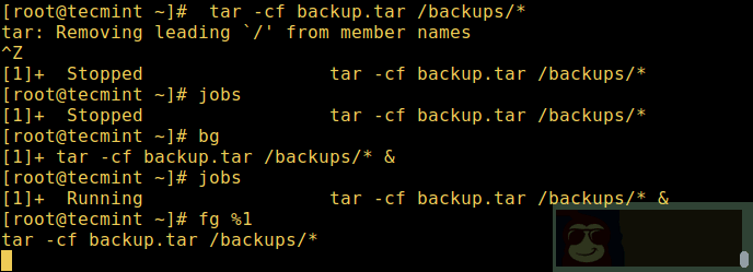 # tar -cf backup.tar /backups/* ### 按下 Ctrl+Z