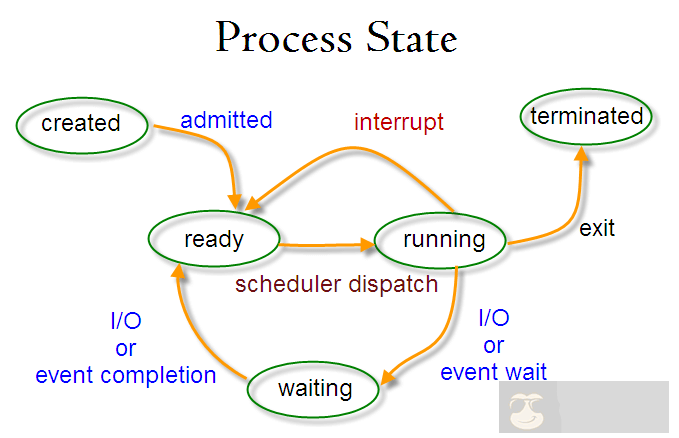 Running - 此时它正在运行(它是系统中的当前进程)或准备运行(它正在等待分配 CPU 单元)。Waiting - 在这个状态,进程正在等待某个事件的发生或者系统资源。另外,内核也会区分两种不同类型的等待进程;可中断等待进程 interruptible waiting processes - 可以被信号中断,以及不可中断等待进程 uninterruptible waiting processes- 正在等待硬件条件,不能被任何事件 / 信号中断。Stopped - 在这个状态,进程已经被停止了,通常是由于收到了一个信号。例如,正在被调试的进程。Zombie - 该进程已经死亡,它已经停止了但是进程表 process table 中仍然有它的条目。