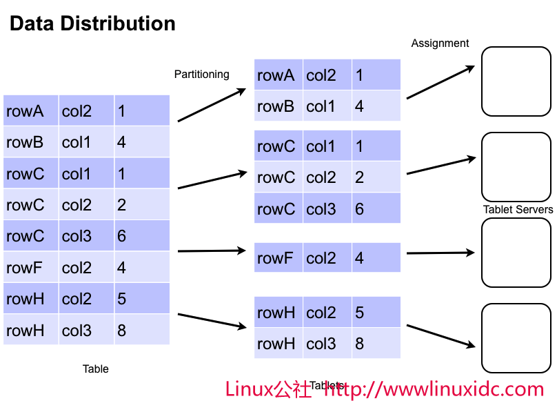 当创建一个表,它有一个平板电脑。随着表的增长,其最初的平板电脑最终分裂成两片。它可能是这些药片将迁移到另一台平板电脑服务器。如上表持续增长,及其片剂将继续分裂和迁移。的决定是基于自动分割片剂的片剂的大小的文件。片剂分割的大小阈值配置的每个表。除了自动分裂,用户可以手动添加的分割点,用来从表中创建新的片剂。手动分裂一个新表可以并行的读取和写入操作提供更好的初始性能,而无需等待自动分割。
