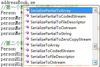 从上图可以看出,可利用序列化的方法很多,本文中主要使用 SerializeToString、SerializeToCodedStream 以及 SerializeToOstream 来完成序列化。