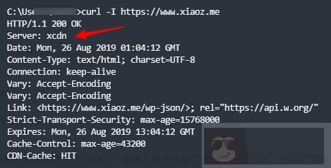 修改完毕后,需要将源码重新编译,如何编译 nginx 这篇文章不做描述,具体请网上搜索。我们可以使用 curl 命令来测试是否修改成功,执行测试命令 curl -I https://blog.xiaoz.org 返回的结果如下,可以看到 Server 那里已经变为xcdn