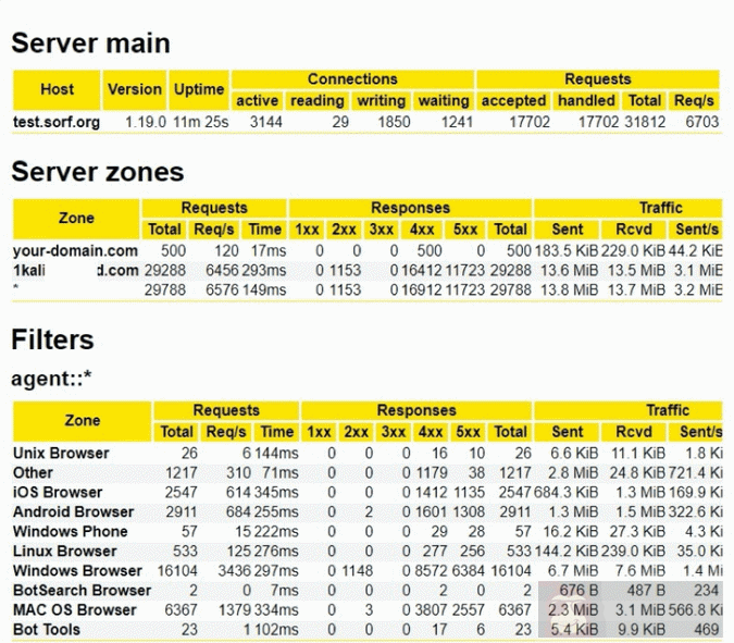 在使用租用的僵尸网络进行的 DDoS 测试中,一次攻击可以高达每秒 6700 个左右的请求,这些请求来自 8600 个独立 IP。这是对一台服务器流量的捕捉: