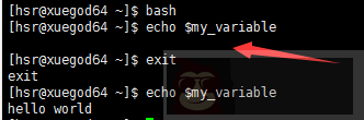如果是在子 shell 中,那该变量就不存在,退回主线程还是存在,如下图所示: