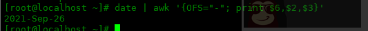[root@localhost ~]# date | awk '{OFS="-"; print $6,$2,$3}'