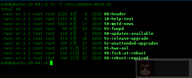 bob@ubuntu-20-04:~$ ls -l /etc/update-motd.d/