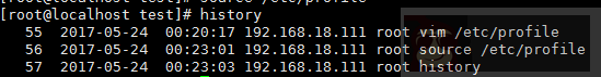修改 /etc/profile 并加载后,history 记录如下,时间、IP、用户及执行的命令都一一对应。