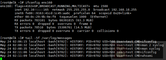 查看效果,我们发现 history 记录已经写到了 /var/log/message 中。