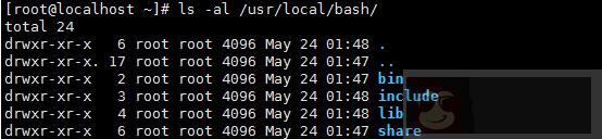 编译安装,编译过程不做详细说明,本文中使用的编译参数为:./configure –prefix=/usr/local/bash,安装成功后对应目录如下: