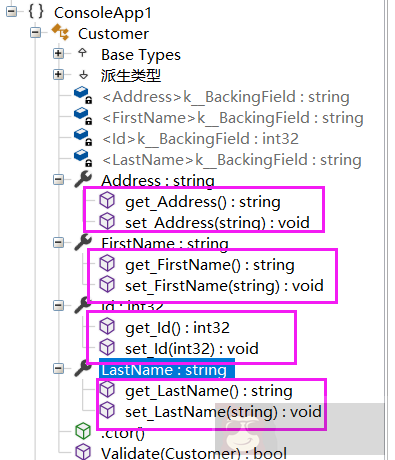 值得注意的是,typeof(Customer).GetProperties() 默认只能获取 标记为 public 的属性集合,对应着 Customer 类下的四个公开属性。