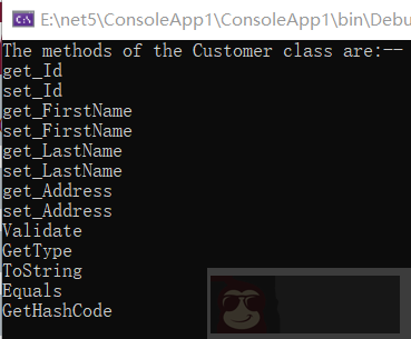 再看一个例子,如何通过反射获取 Customer 下的所有属性,并且将属性名字全部展示在控制台上,如下代码所示: