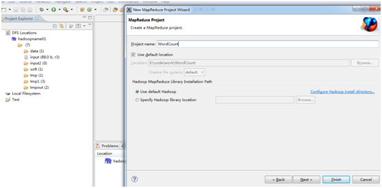 File—>Project,选择 Map/Reduce Project,输入项目名称 WordCount 等。