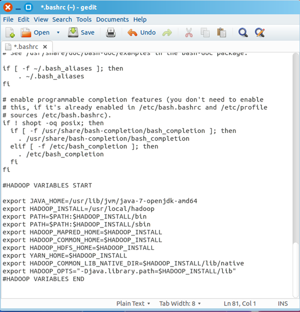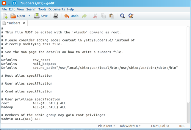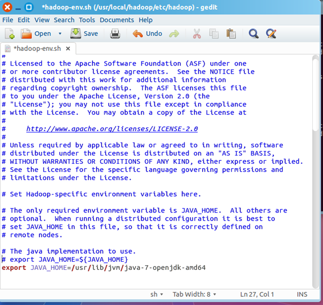 sudo gedit /usr/local/hadoop/etc/hadoop/hadoop-env.sh