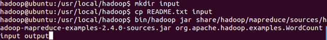 bin/hadoop jar share/hadoop/mapreduce/sources/hadoop-mapreduce-examples-2.4.0-sources.jar org.apache.hadoop.examples.WordCount input output