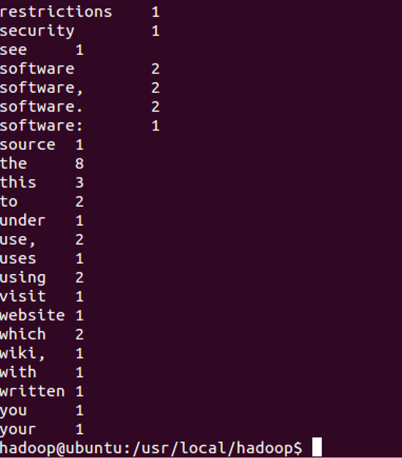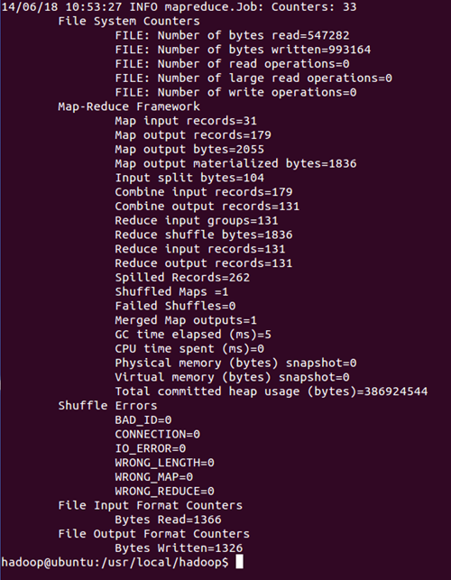 单机模式安装完成,下面通过执行 hadoop 自带实例 WordCount 验证是否安装成功