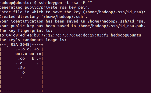 此时会在/home/hadoop/.ssh 下生成两个文件:id_rsa 和 id_rsa.pub,前者为私钥,后者为公钥。