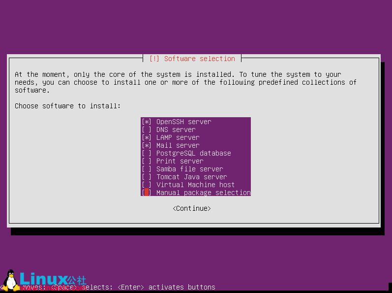 选择要安装的软件(译注:仅仅选择你的服务器所必须的,暂时不用的,最好不要选择。将来需要增加或许修改时,你还有足够的时间去改变。):