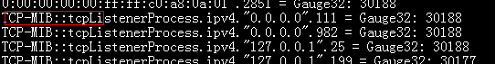 比如说获取 TCP-MIB.txt 中的信息 tcp 节点的 OID 是 1.3.6.1.2.1.6,设置好之后重启服务,将会得到 tcp 的相关信息。