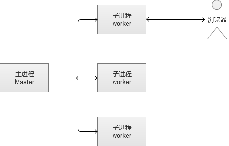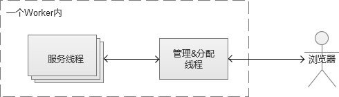 worker 模式比起 prefork,是使用了多进程和多线程的混合模式。它也预先 fork 了几个子进程(数量很少),然后每个子进程创建一些线程(其中包括一个监听线程)。每个请求过来,会被分配到 1 个线程来服务。线程比起进程会更轻量,因为线程通常会共享父进程的内存空间,因此,内存的占用会减少一些。在高并发的场景下,因为比起 prefork 更省内存,因此会有更多的可用线程。