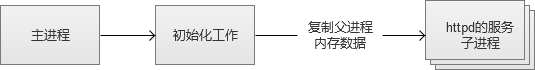 prefork 是 Apache 最成熟和稳定的工作模式,即使是现在,仍然被广泛使用。主进程生成后,它先完成基础的初始化工作,然后,通过 fork 预先产生一批的子进程(子进程会复制父进程的内存空间,不需要再做基础的初始化工作)。然后等待服务,之所以预先生成,是为了减少频繁创建和销毁进程的开销。多进程的好处,是进程之间的内存数据不会相互干扰,同时,某个进程异常终止也不会影响其他进程。但是,就内存而言,每个 httpd 子进程占用了很多的内存,因为子进程的内存数据是复制父进程的。我们可以粗略认为,这里存在大量的“重复数据”被放在内存中。最终,导致我们能够生成的子进程最大数量是很有限。在面对高并发时,因为有不少 Keep-alive 的长连接,将这些子进程“霸占”住,很可能导致可用子进程耗尽。因此,prefork 并不太适合高并发场景。