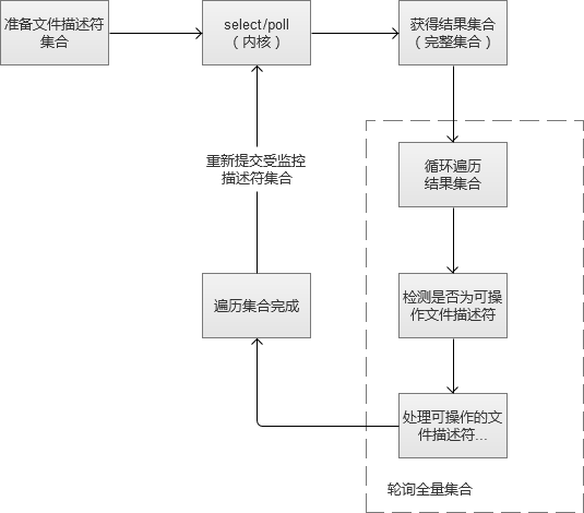 select/poll 返回的是一个我们之前提交的文件描述符集合(内核将其中可读、可写或者异常状态的 socket 文件描述符的标识位修改了),我们需要通过轮询检查才能获得我们可以操作的文件描述符。在这个过程中,不断重复执行。在实际应用场景中,大部分被我们监控的 socket 文件描述符,都是”空闲的“,也就是说,不能操作。我们对整个集合轮询,就是为了找了少部分我们可以操作的 socket 文件描述符。于是,当我们监控的 socket 文件描述符越多(用户并发连接数越来越多),这个轮询工作,也就越来越沉重,进而导致增大了 CPU 的开销。
