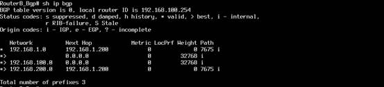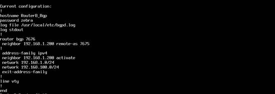 可以看到,有一条路由规则:B>* 192.168.100.0/24 这一行。这个便是 bgpd 产生的。