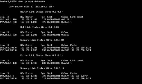 5. 输入 show ip ospf database,可以看到更为详细的信息被输出了。由此,我们可以进一步确认,两个路由器成功地相互识别了。好了,大功告成。接下来我们将会进入测试阶段。