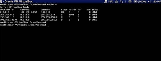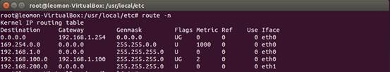 在 Linux 系统下的路由表是从有小网络排列到大网络的。我们可以使用 route -n 查看主机上的路由表。参见下面的截图:
