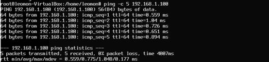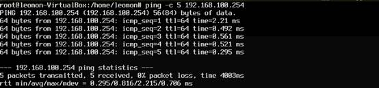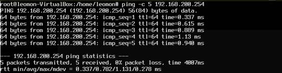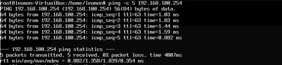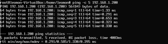又到了最后测试的环节了。还是和前面一样,使用 ping 的方式进行测试。如果可以 ping 通,表明测试成功。两个处于不同网段的客户端可以正常通信了。下面给出详细 ping 测试的截图。