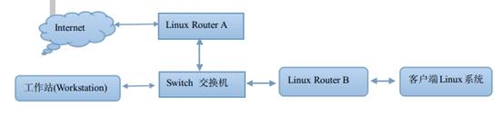 | Linux Router A | Linux Router B | 工作站 | 客户端 |