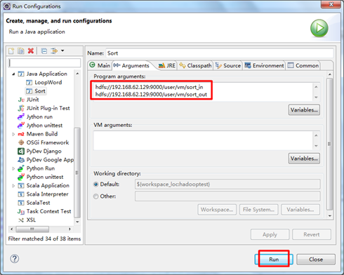 右键选择 Run As -> Run Configurations…,在参数中填好输入输出目录,执行 Run 即可。