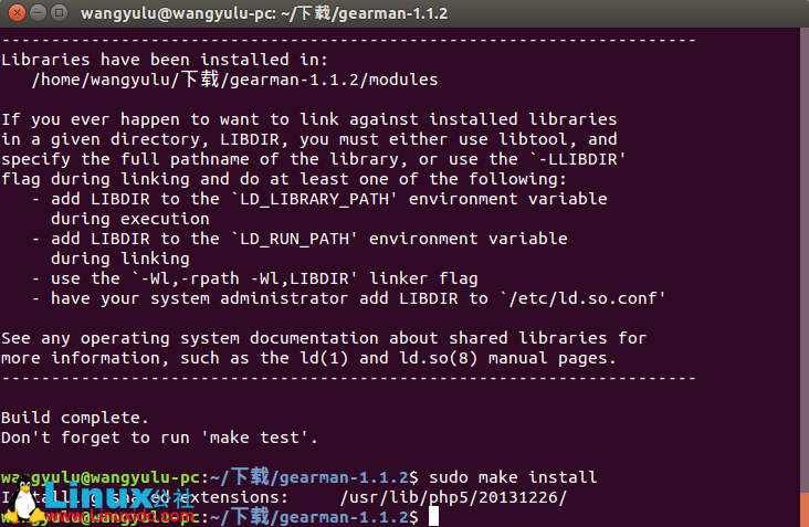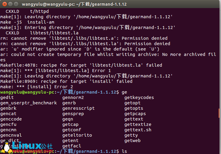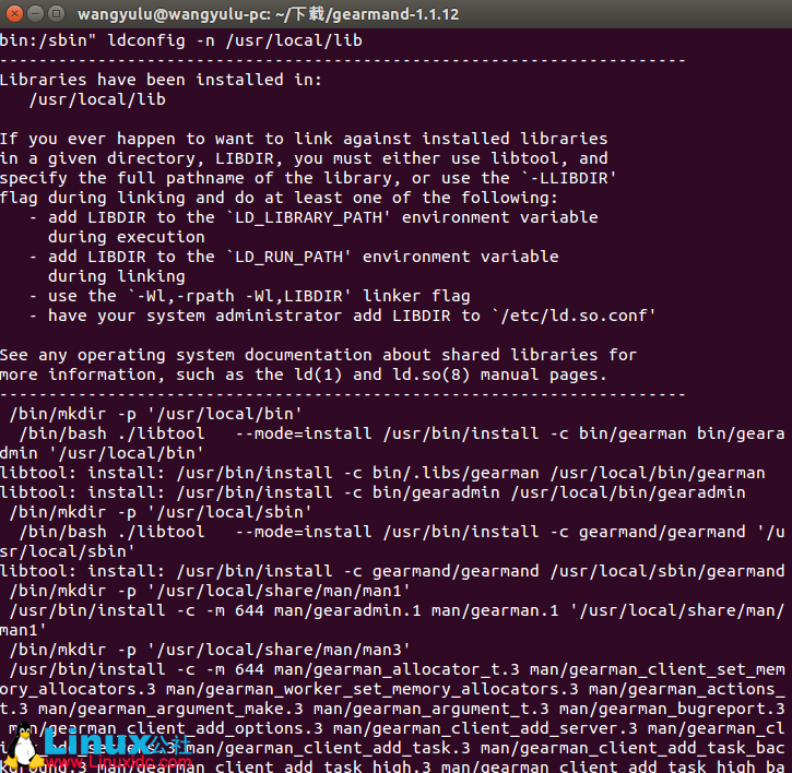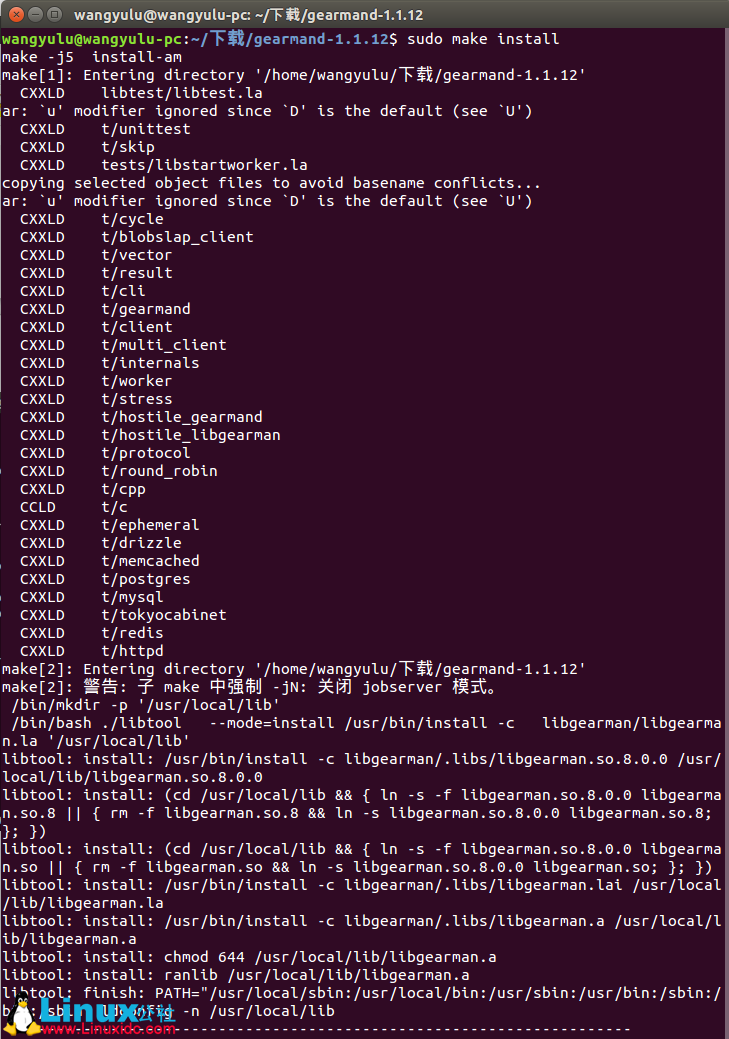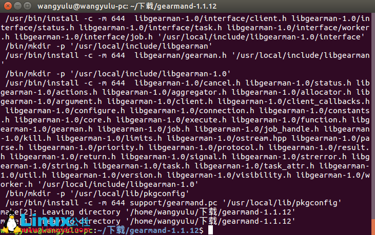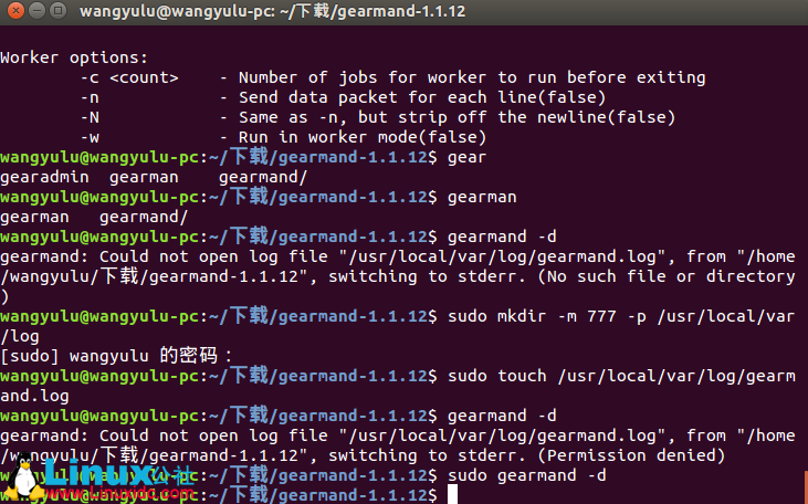 gearmand: Could not open log file “/usr/local/var/log/gearmand.log”, from “/home/wangyulu/ 下载 /gearmand-1.1.12”, switching to stderr. (No such file or directory)