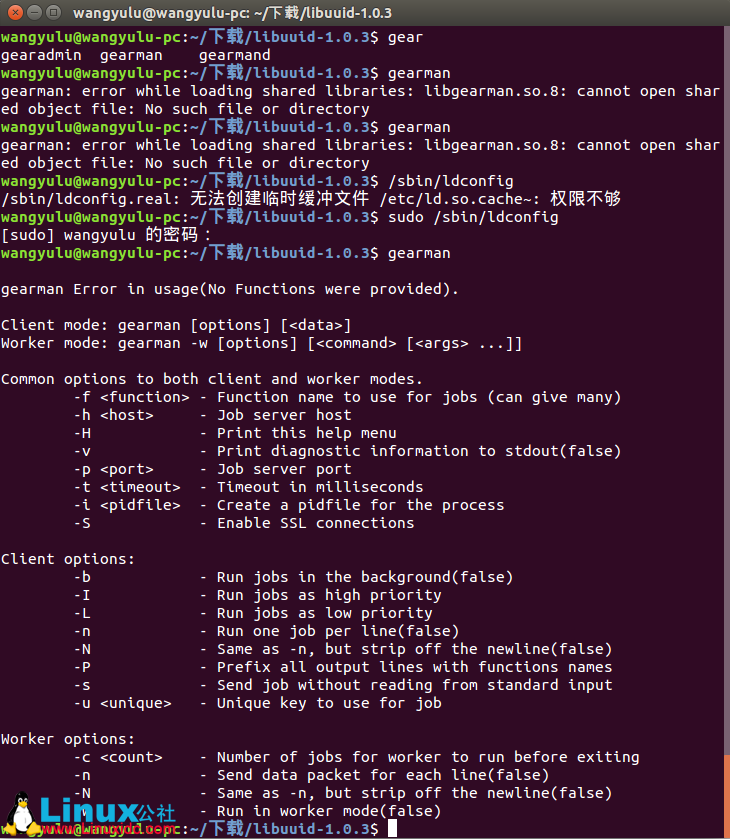 (这表示系统不知道 libgearman.so.8 放在哪个目录下。要在 /etc/ld.so.conf 中加入 libgearman.so.8 所在的目录。检查了下,文件所在目录为 /usr/local/lib。因此出现这个问题的原因是 libgearman.so.8 刚生成,没有加入到 ld.so.cache 中,所以这时需要重新运行一下 /sbin/ldconfig( ldconfig 命令的作用):)