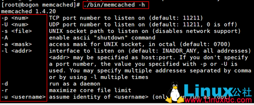 如果需要查看参数信息,使用 memcached -h 查看帮助: